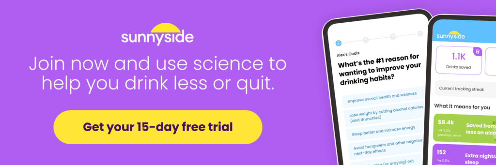 This article references the August 2024 ACER study titled “Self-reported alcohol consumption during participation in a text messaging-based online drinking moderation platform”, available here: https://doi.org/10.1111/acer.15414. Sunnyside’s data was used for the study, but we weren’t involved in the research and analysis. The related press release is available here.