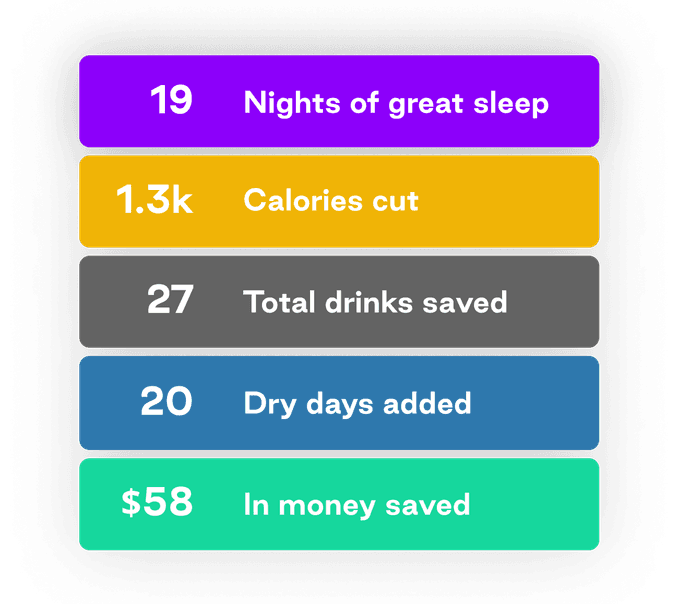 Whether it’s sleep, dry days, or drinks cut, Sunnyside shows you your progress in the terms that matter most to you.